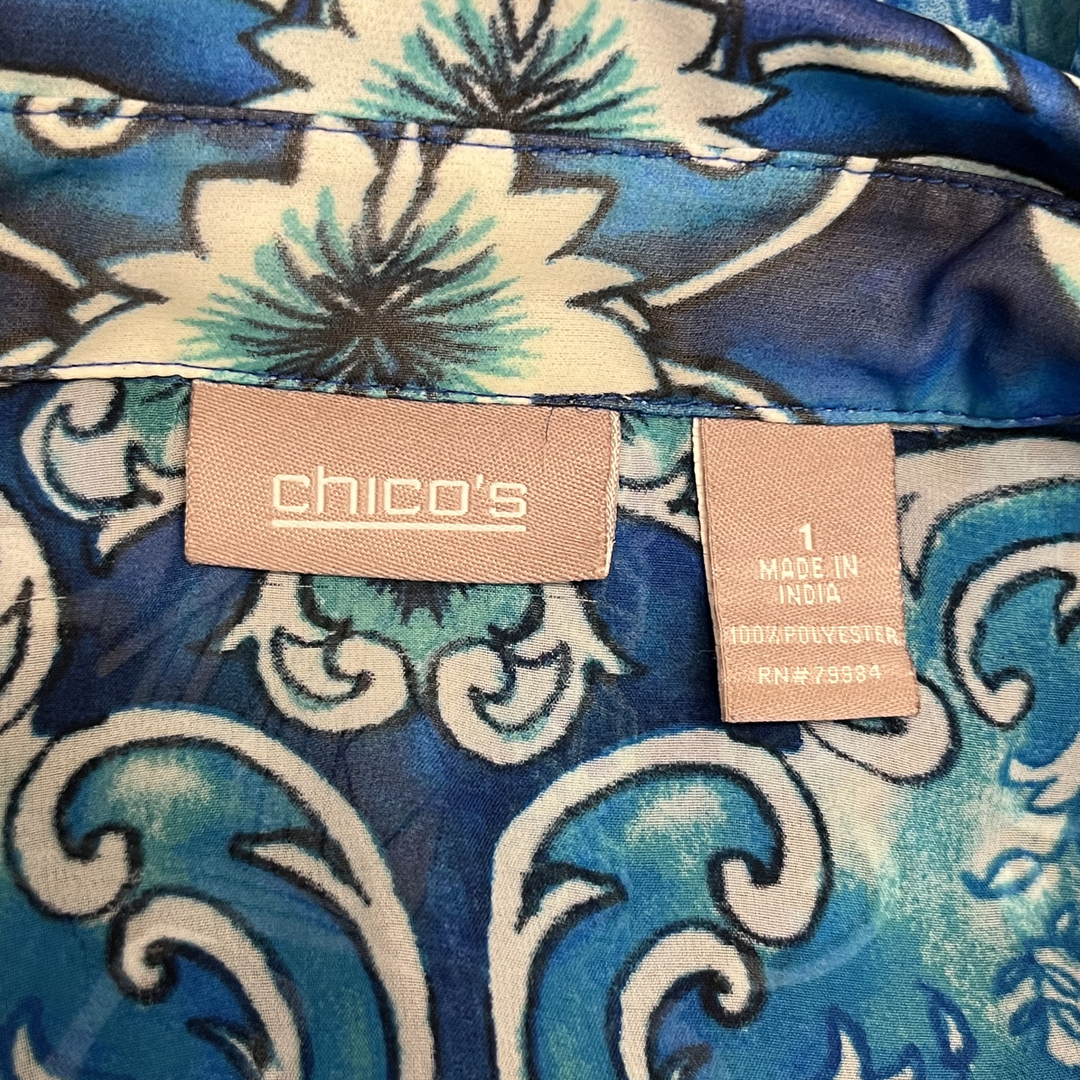Tops 3/4 Sleeve Chico's Small BlueTeal